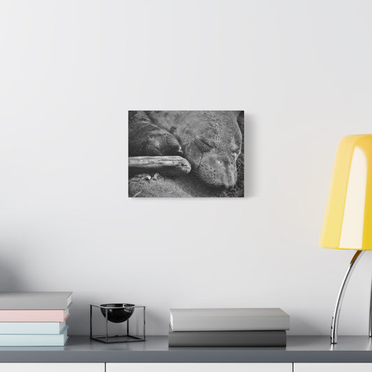 Elephant Seal Mother and Pup Canvas Print | Black and White Wildlife Wall Art